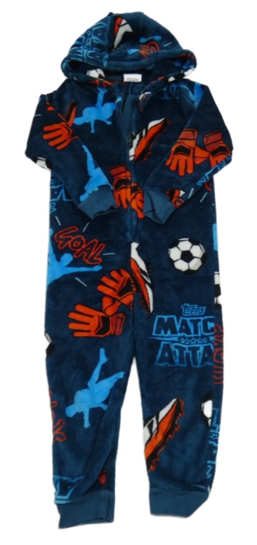Petrolejová plyšová kombinéza s fotbalisty a kapucí Matalan