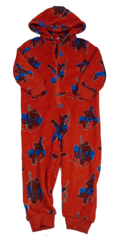 Červená chlupatá kombinéza se Spidermanem a kapucí M&S
