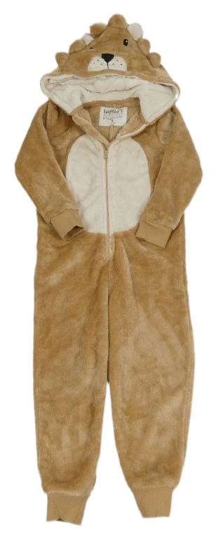 Hnědo-smetanová plyšová kombinéza s kapucí - lev