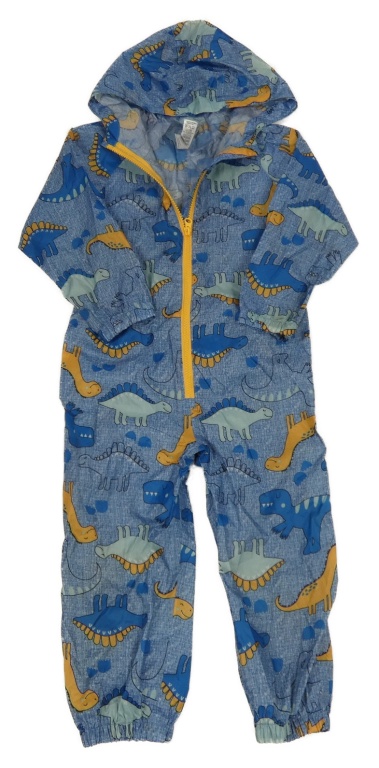 Modrá melírovaná šusťáková nepromokavá kombinéza s dinosaury a kapucí Dunnes