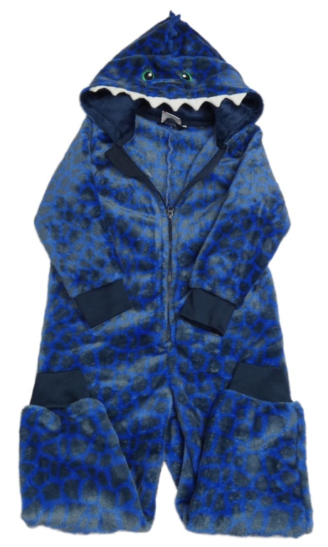 Modro-šedá vzorovaná plyšová kombinéza s kapucí - dino