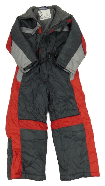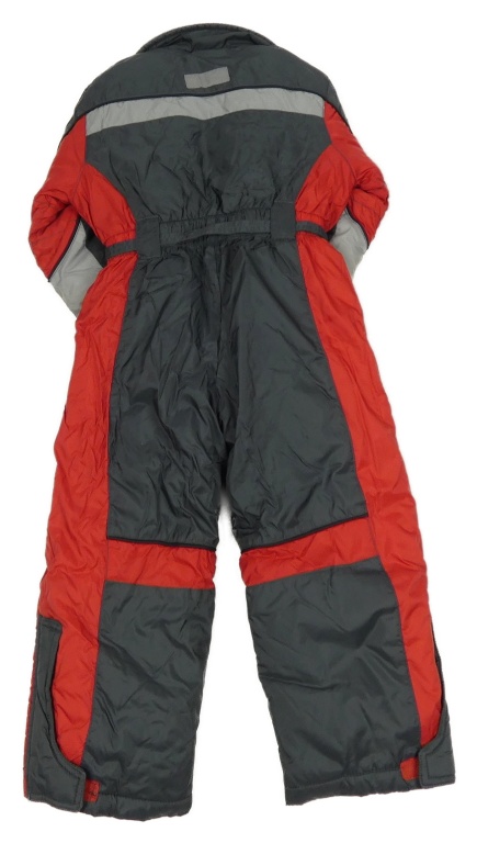 Tmavošedo-šedo-červená šusťáková zimní kombinéza s páskem