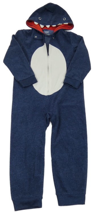 Tmavomodro-bílá fleecová kombinéza s kapucí- žralok Carter's