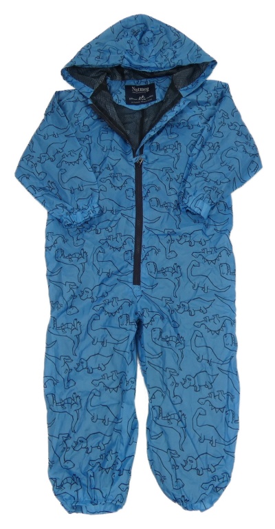 Modrá šusťáková kombinéza s dinosaury a kapucí Nutmeg