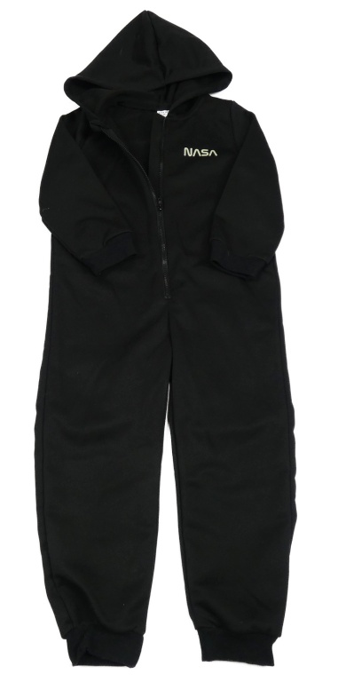 Černá tepláková kombinéza s nápisem - NASA a kapucí SHEIN