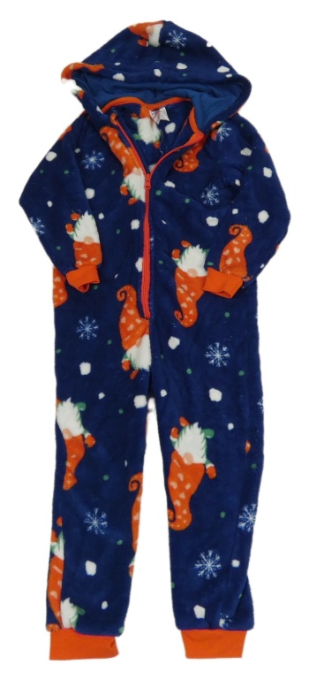 Tmavomodro-červený plyšová kombinéza se skřítky a kapucí