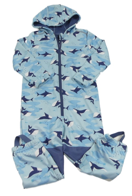 Světlemodrá softshellová kombinéza s velrybami a kapucí Lupilu