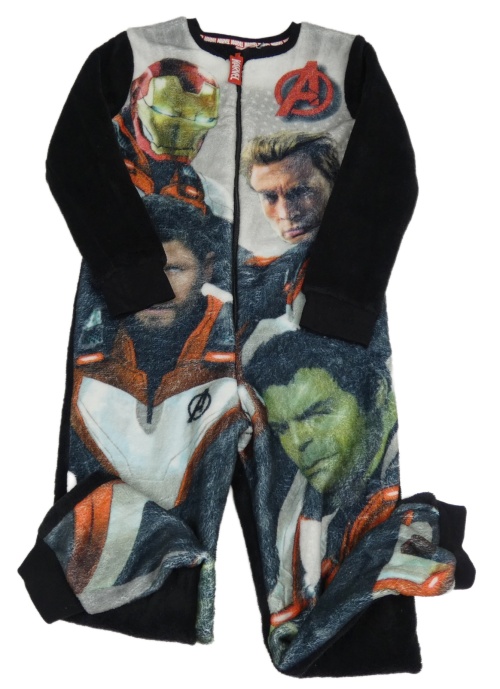 Černo-šedá chlupatá kombinéza s hrdiny Marvel
