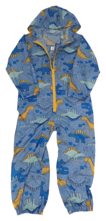 Modrá melírovaná šusťáková voděodolná kombinéza s dinosaury a kapucí Dunnes