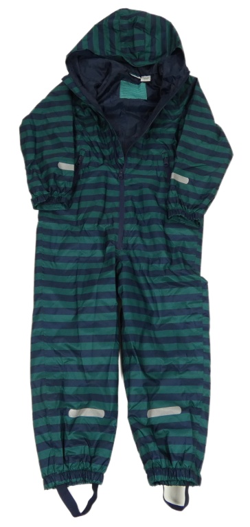 Tmavomodro-tmavozelená pruhovaná šusťáková podzimní kombinéza s kapucí Lily & Dan