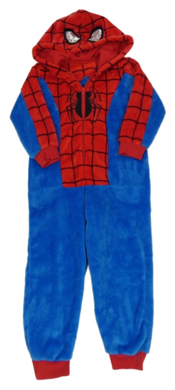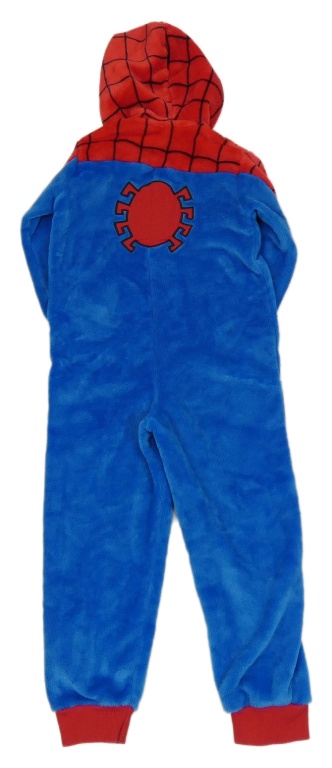 Modro-červená chlupatá kombinéza s pavoukem a kapucí - Spiderman