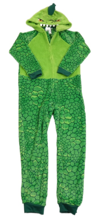 Zelená vzorovaná chlupatá kombinéza s kapucí - dinosaurus