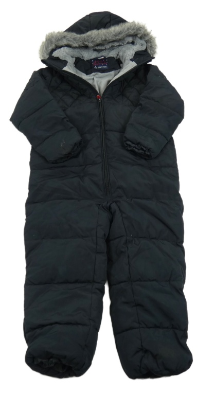 Tmavomodrá prošívaná šusťáková zimní kombinéza s kapucí s kožešinou Next