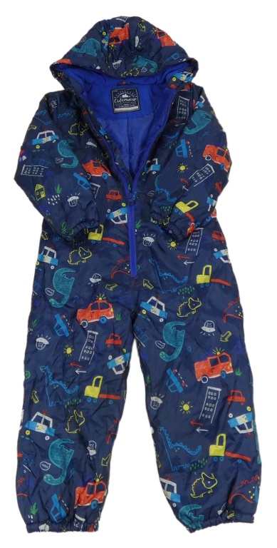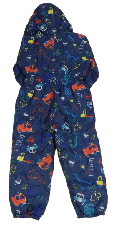 Tmavomodrá šusťáková zimní kombinéza s dinosaury a kapucí George