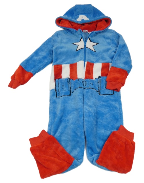 Modro-červeno-bílá plyšová kombinéza s kapucí - Kapitán Amerika Marvel