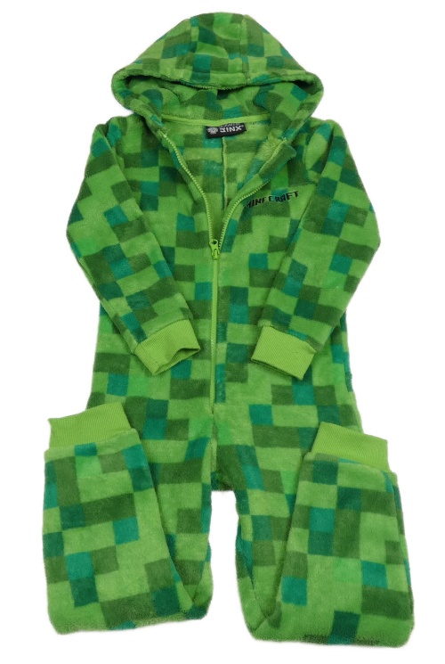 Zelená kostkovaná chlupatá kombinéza s kapucí - Minecraft