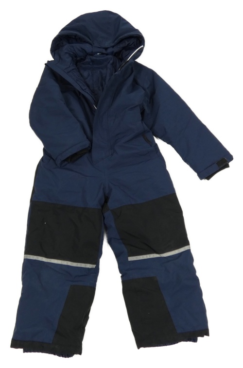 Tmavomodro-černá šusťáková zimní kombinéza s kapucí bpc