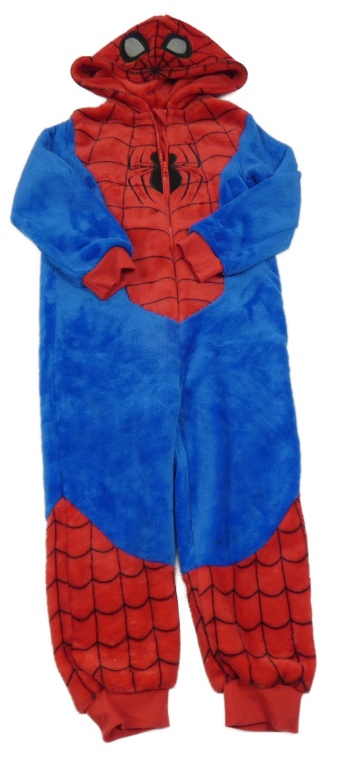 Červeno-tmavomodrá plyšová kombinéza s kapucí - Spiderman Marvel