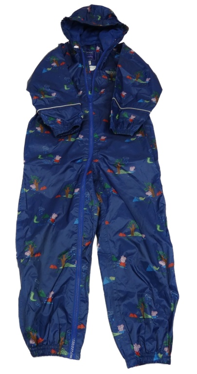 Tmavomodrá šusťáková jarní funkční kombinéza s Peppou a Tomíkem a kapucí Regatta