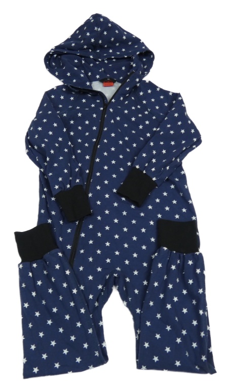 Tmavomodrá bavlněná kombinéza s hvězdami a kapucí