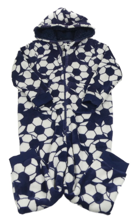 Tmavomodro-bílá chlupatá kombinéza s míčky a kapucí M&Co.