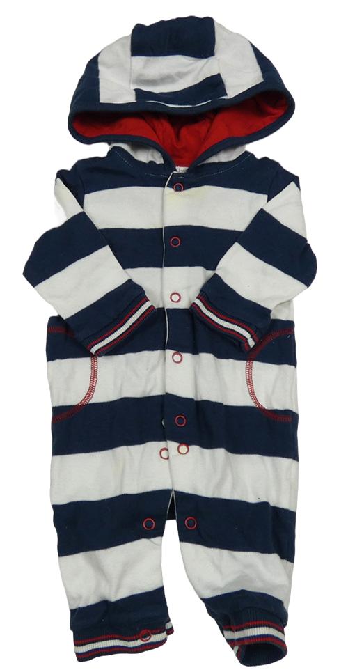 Tmavomodro-bílá pruhovaná bavlněná kombinéza s kapsou a kapucí M&Co.