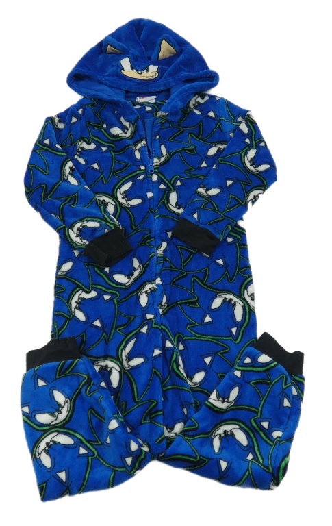 Modrá vzorovaná chlupatá kombinéza s kapucí - Sonic