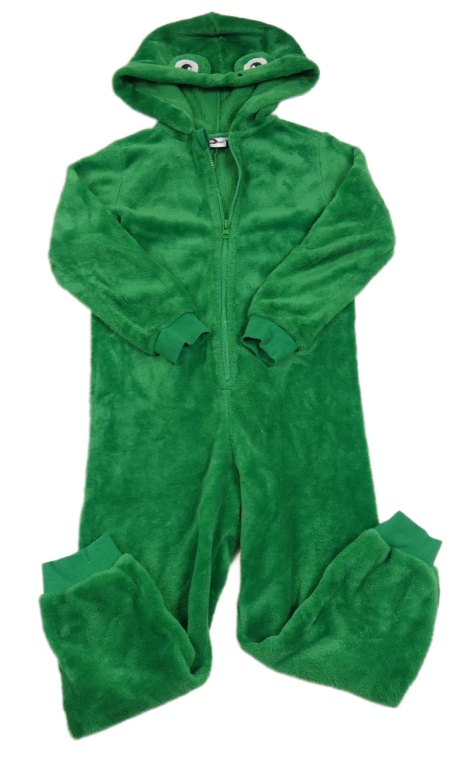 Zelená plyšová kombinéza s kapucí - žabička peuhu