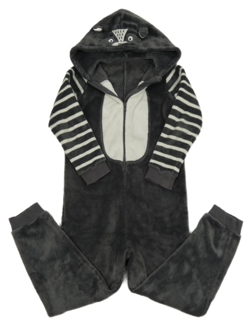 Antracitovo-bílá chlupatá kombinéza s kapucí - mýval Matalan