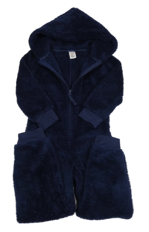 Tmavomodrá chlupatá kombinéza s kapucí Peacocks