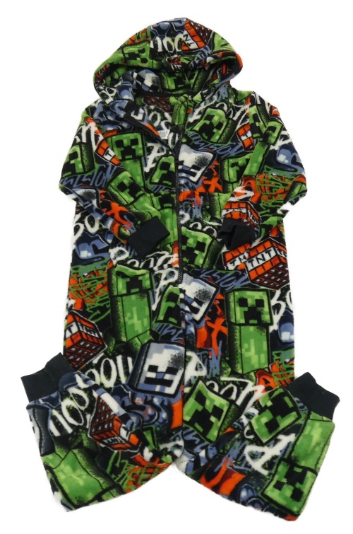 Barevno-černá plyšová kombinéza s Minecraft a kapucí Next