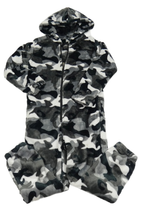 Černo-bílá army plyšová kombinéza s kapucí