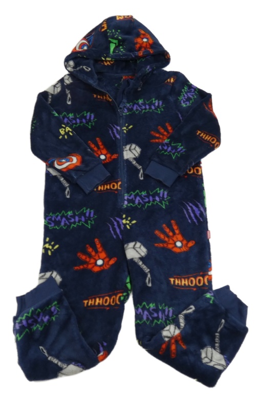 Tmavomodrá chlupatá kombinéza s hrdiny a kapucí