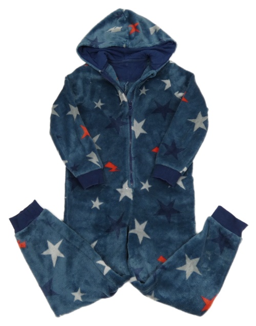 Tmavomodrá chlupatá kombinéza s hvězdami a kapucí M&S
