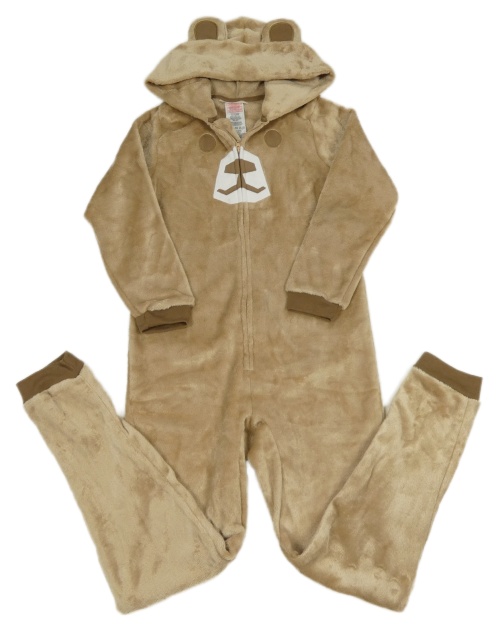 Hnědá chlupatá kombinéza s medvědem a kapucí