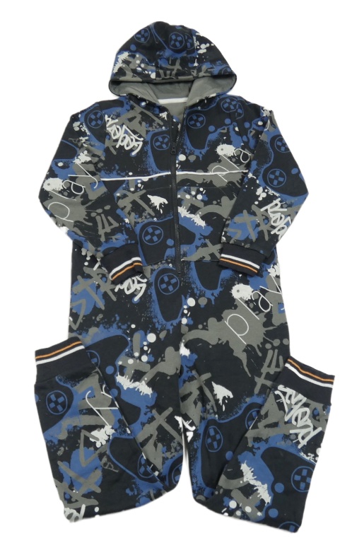 Černo-šedo-modrá batikovaná skvrnitá tepláková kombinéza s ovladači a kapucí Matalan