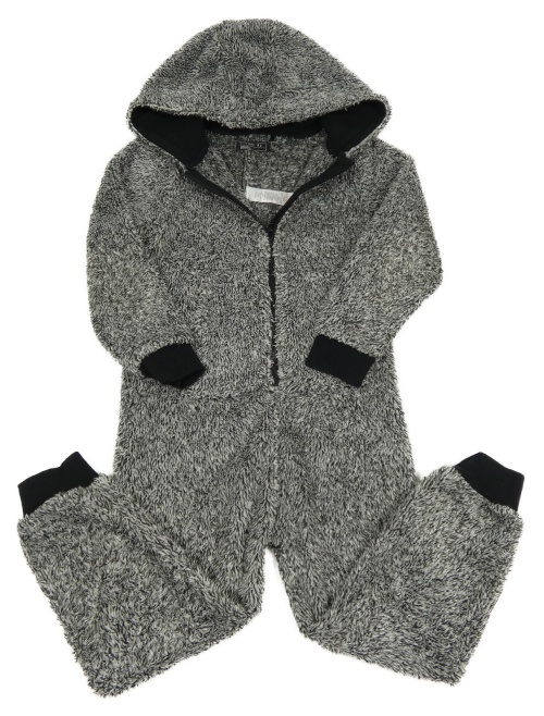 Černo-bílá melírovaná chlupatá kombinéza s kapucí Next