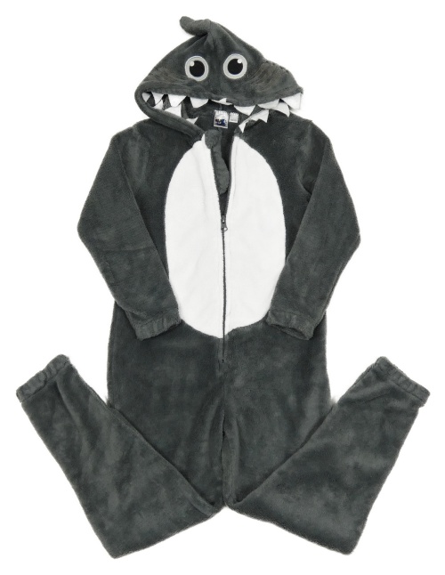 Tmavošedo-bílá chlupatá kombinéza s kapucí - příšerka