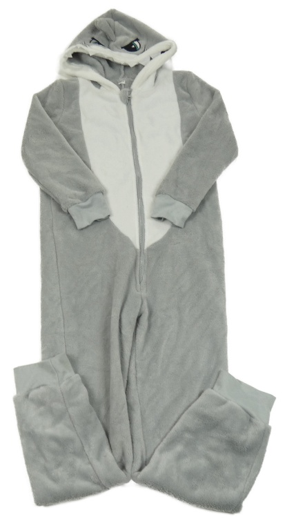Šedo-bílá chlupatá kombinéza s kapucí - žralok Zeeman