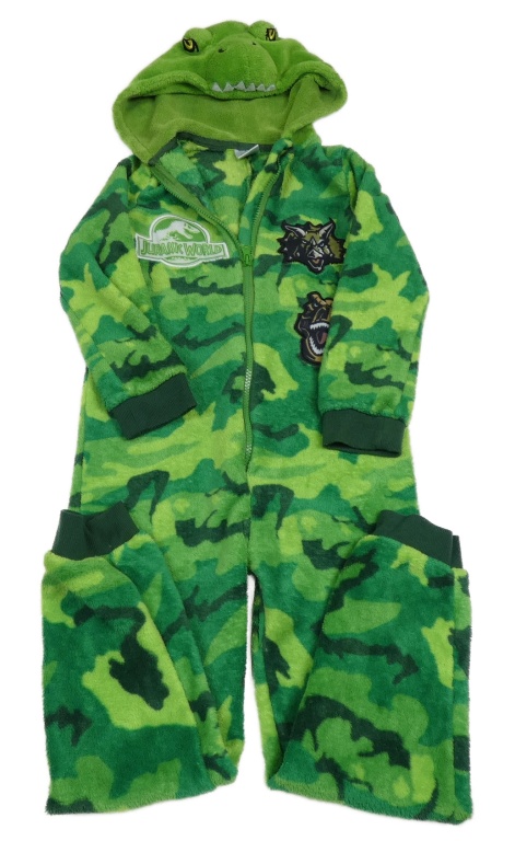 Zelená army plyšová kombinéza s dinosaury - Jurský svět a kapucí