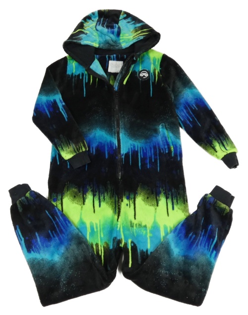 Černo-zeleno-modrá vzorovaná chlupatá kombinéza s kapucí Next