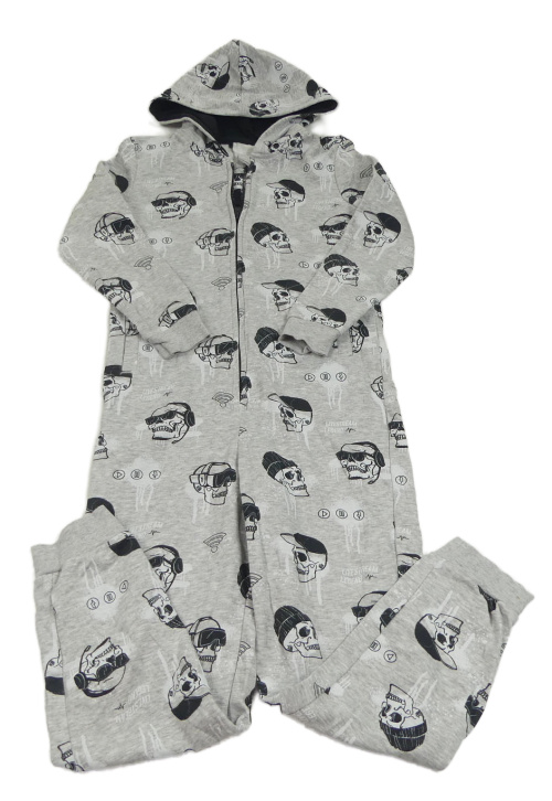 Šedá tepláková kombinéza s lebkami a kapucí George