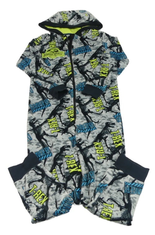 Šedá plyšová kombinéza s kostrami dinosaurů a kapucí - Jurský svět