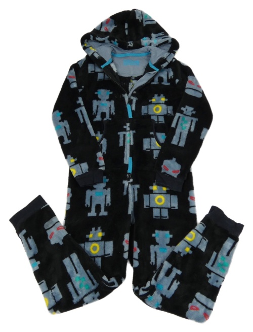 Černá plyšová kombinéza s roboty a kapucí M&S