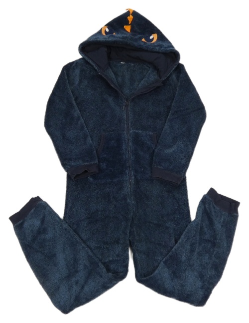 Tmavomodrá chlupatá kombinéza s kapucí s očima a ostny