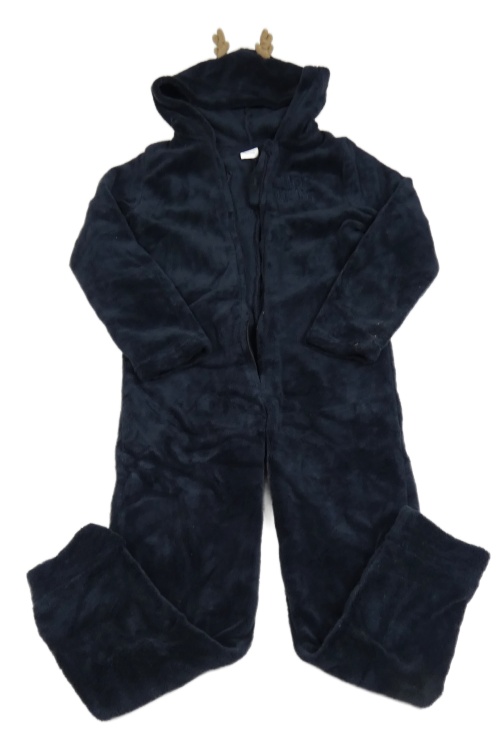 Tmavomodrá chlupatá kombinéza s kapucí