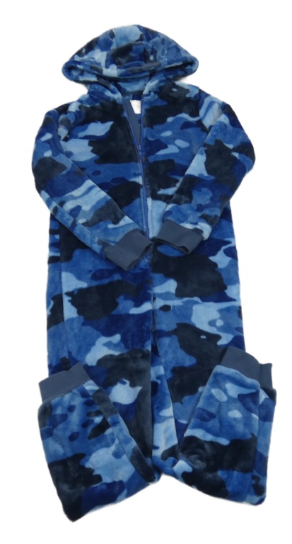 Modro-tmavomodrá army chlupatá kombinéza s kapucí F&F