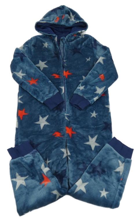 Tmavomodrá plyšová kombinéza s hvězdami a kapucí M&S