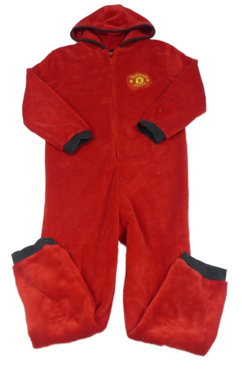 Červeno-černá plyšová fotbalová kombinéza Manchester United a kapucí