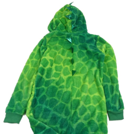 Zelená vzorovaná chlupatá kombinéza a kapucí - dinosaurus Pep&Co